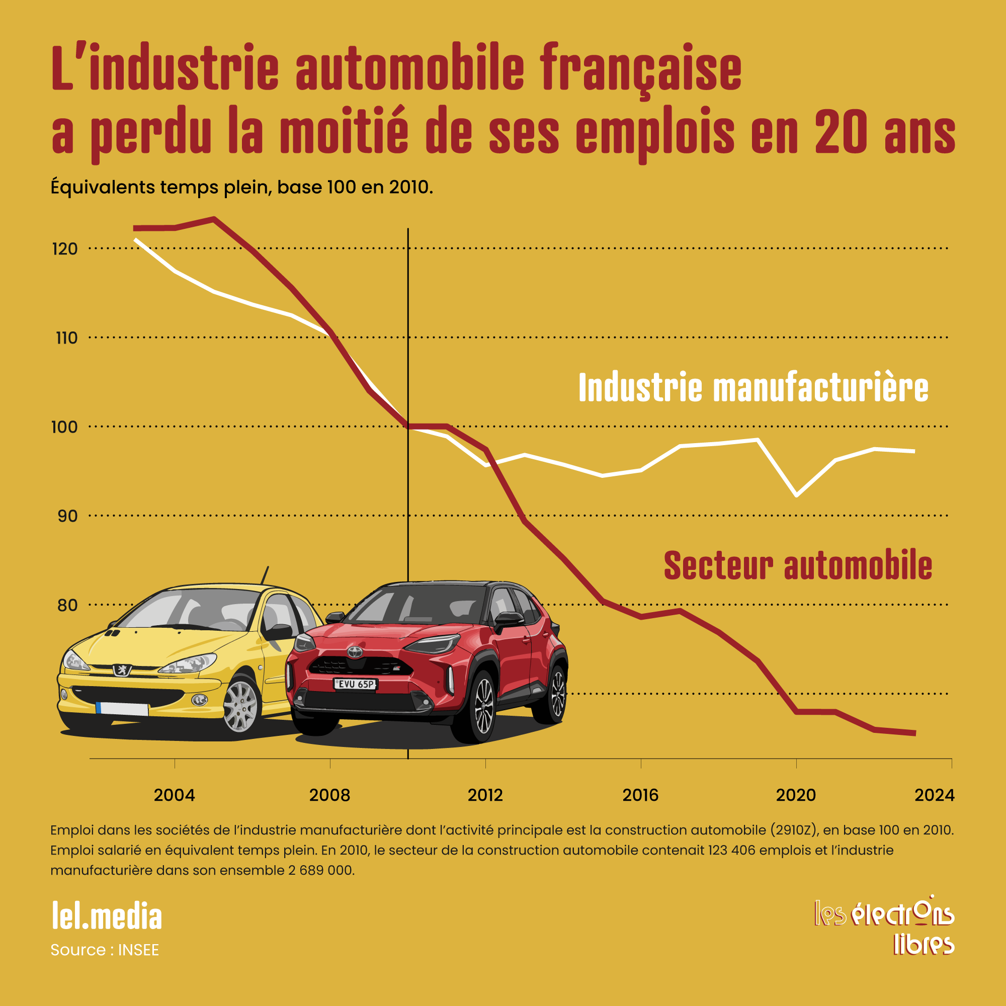 Plus de 220 000 emplois détruits en vingt ans. L’industrie automobile française compte aujourd’hui presque deux fois moins de salariés qu’au début du siècle. Pendant ce temps, la Chine s’est imposée comme le premier producteur mondial.