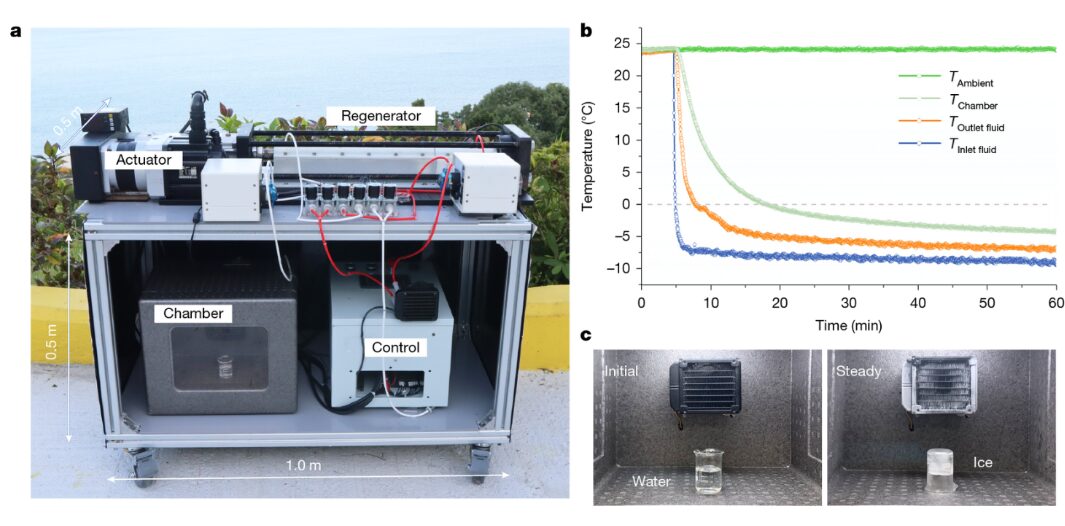 Toutefois, le chemin vers une commercialisation à grande échelle reste semé d’embûches. Le fait de devoir générer de telles pressions nécessite des actionneurs mécaniques robustes, qui sont à ce jour trop coûteux ou volumineux pour être intégrés dans l’électroménager grand public. Bref, si la prouesse réalisée en labo est indiscutable, le passage au réfrigérateur domestique exigera plusieurs années d’optimisation en ingénierie des matériaux. À suivre…