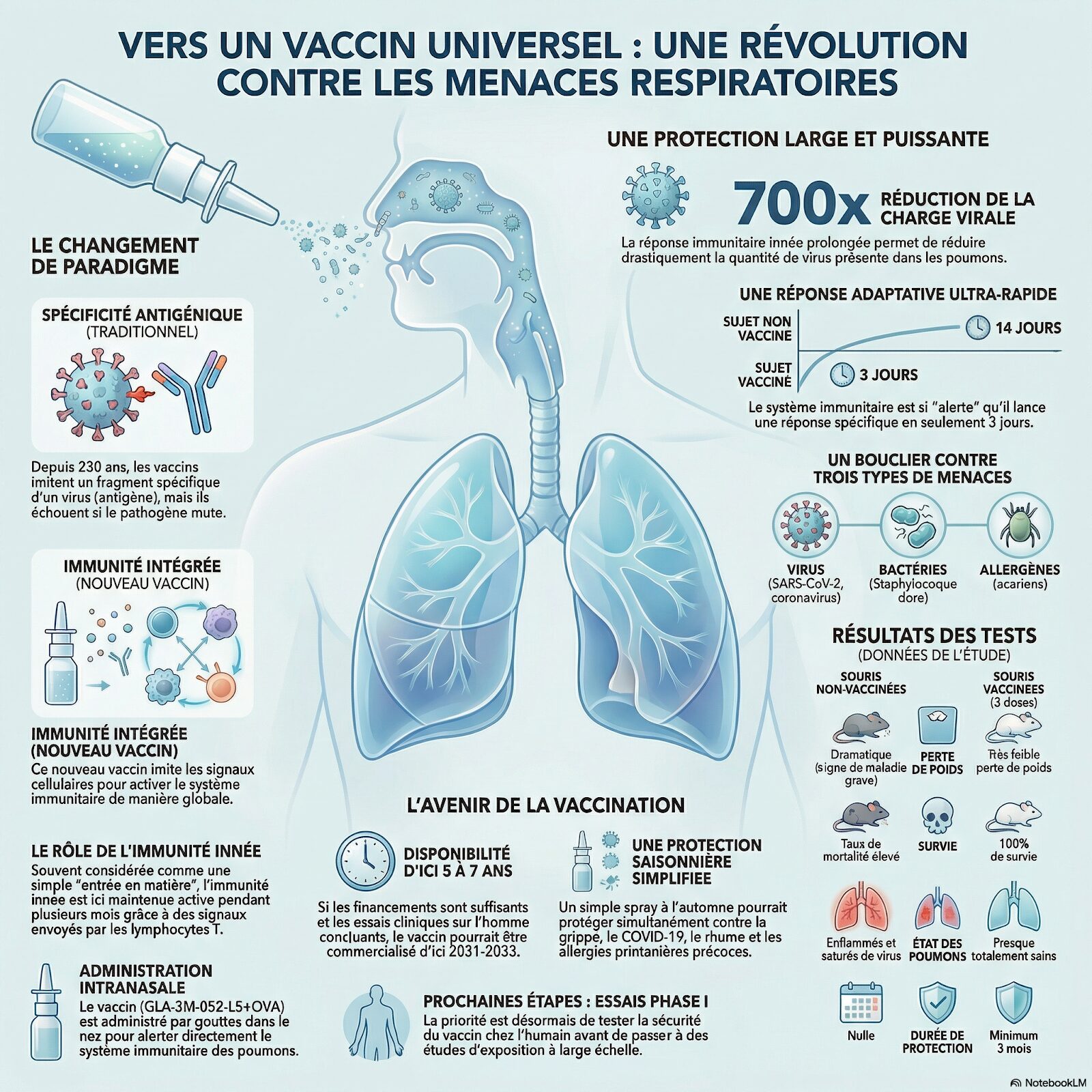 Cette subtile ruse biologique permet d’attirer et de déployer massivement une redoutable armée de globules blancs spécialisés directement au cœur des muqueuses respiratoires. Ces sentinelles implacables de notre corps sont alors placées dans un état d’alerte maximale. Ainsi mobilisée de manière préventive, cette ligne de défense immunitaire repousse tous les agresseurs tentant de franchir nos voies aériennes. L’efficacité mesurée est impressionnante, parvenant à réduire drastiquement la charge virale dans les poumons d’un facteur pouvant atteindre 700. De surcroît, ce bouclier protecteur offre une couverture prolongée, son effet se maintenant durant une période d’au moins trois mois.