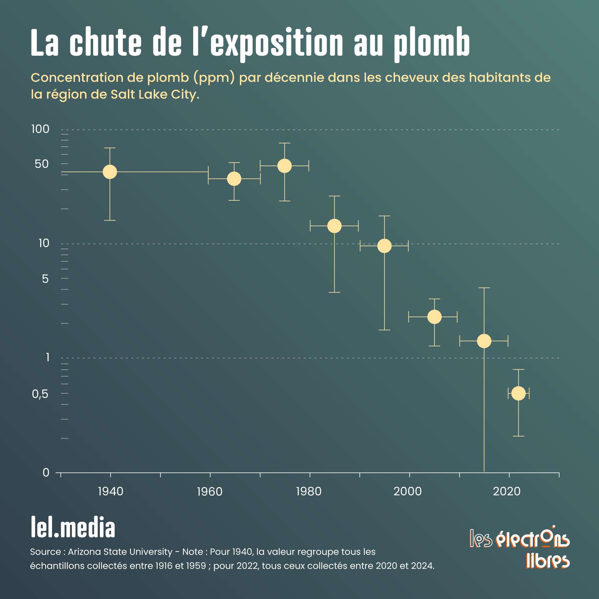 Or, des chercheurs de l’université de l’Utah ont analysé des mèches de cheveux conservées pendant un siècle, certaines datant de 1916, d’autres prélevées en 2024. Leurs résultats, publiés dans la revue Proceedings of the National Academy of Sciences (PNAS), révèlent une chute spectaculaire de l’exposition humaine au plomb.